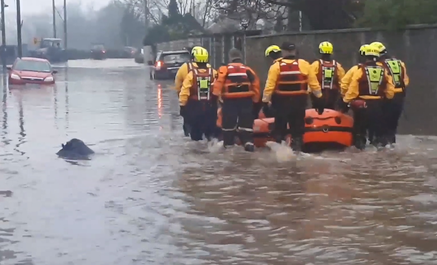 Below: Laois Civil Defence bring a boat to rescue residents on Manor Road, Mountmellick in 2017. Image: Leinster Express