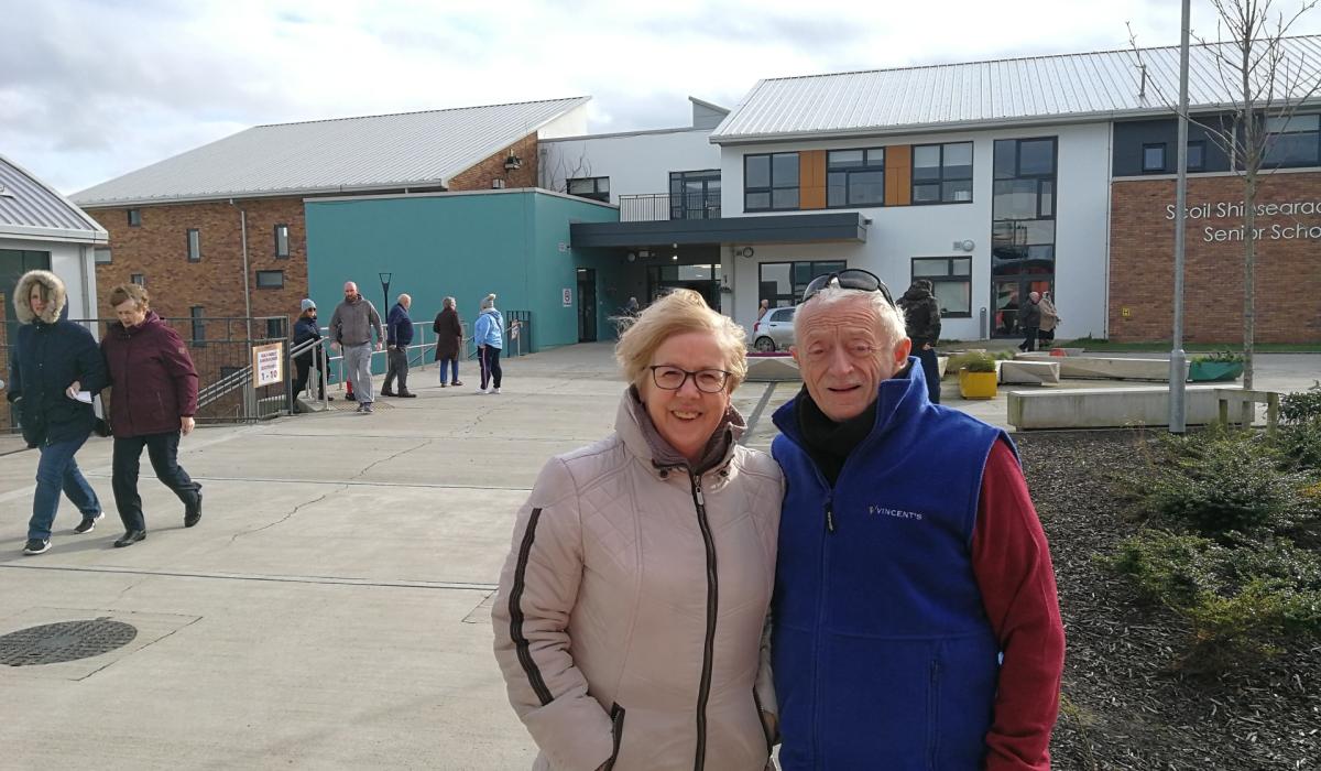 Jean and Billy Fitzpatrick outside the Holy Family School in Portlaoise after they had voted.