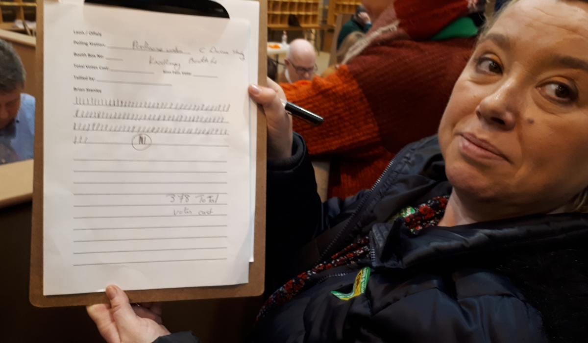 Carololine Dwane Stanley with a tally sheet in Portlaoise
