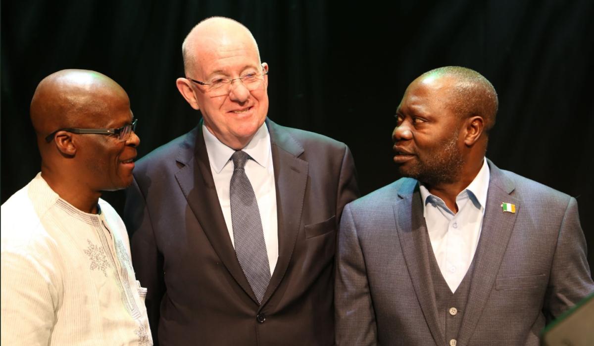 Former Portlaoise Mayor Rotimi Adebari, Minister for Justice Charlie Flanagan and Timothy Adejumo.
