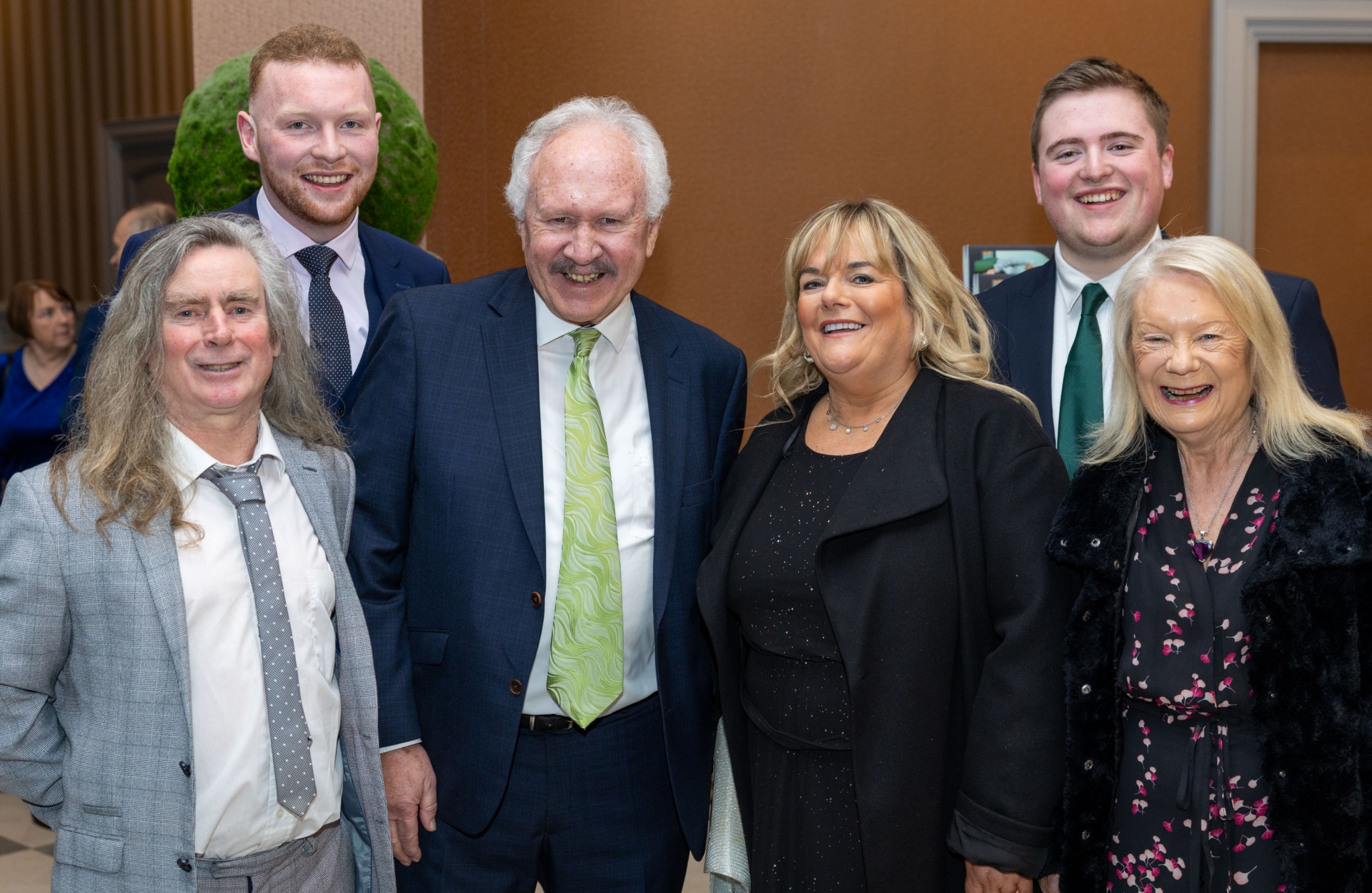 Austin Clancy, Joey Kennedy, Cllr Padraig Fleming, Liz Anne Molloy, Ross Molloy and Mary Saunders at the Laois Fianna Fáil Centenary Gala Dinner in The Midlands Park Hotel, Portlaoise. Photo: Alf Harvey