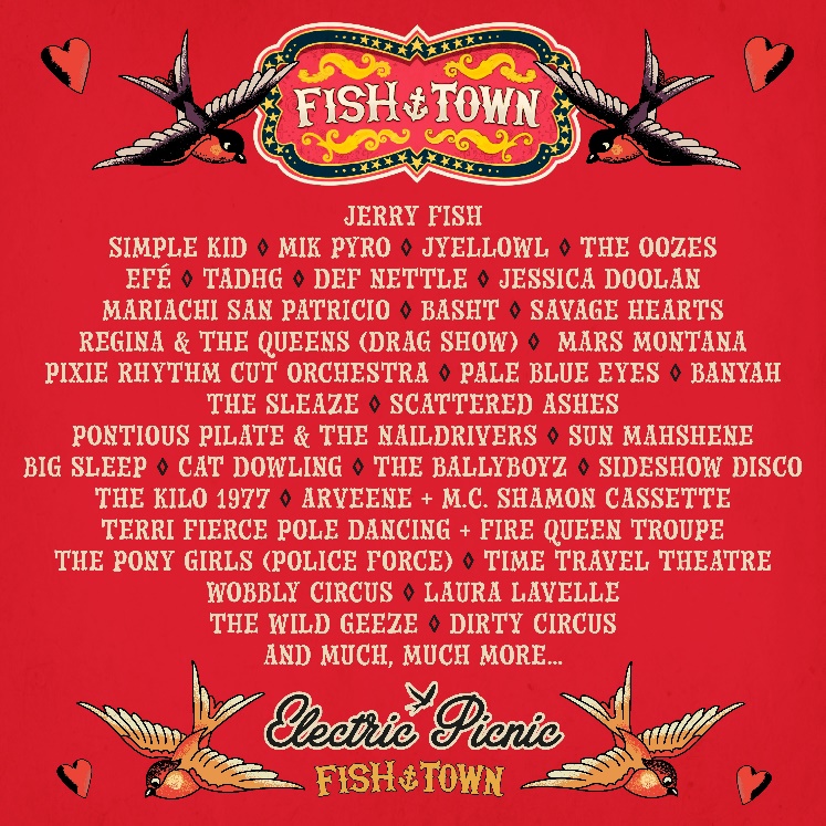 "Roll up! Roll up! The late-night, mischief-filled arena that is Fishtown has gotten even bigger and bolder for Electric Picnic 2023. Caged, stray, concealed or revealed, it’s all good at Fish Town, this is where we redefine “normal” with ringmaster extraordinaire Jerry Fish at the helm.
