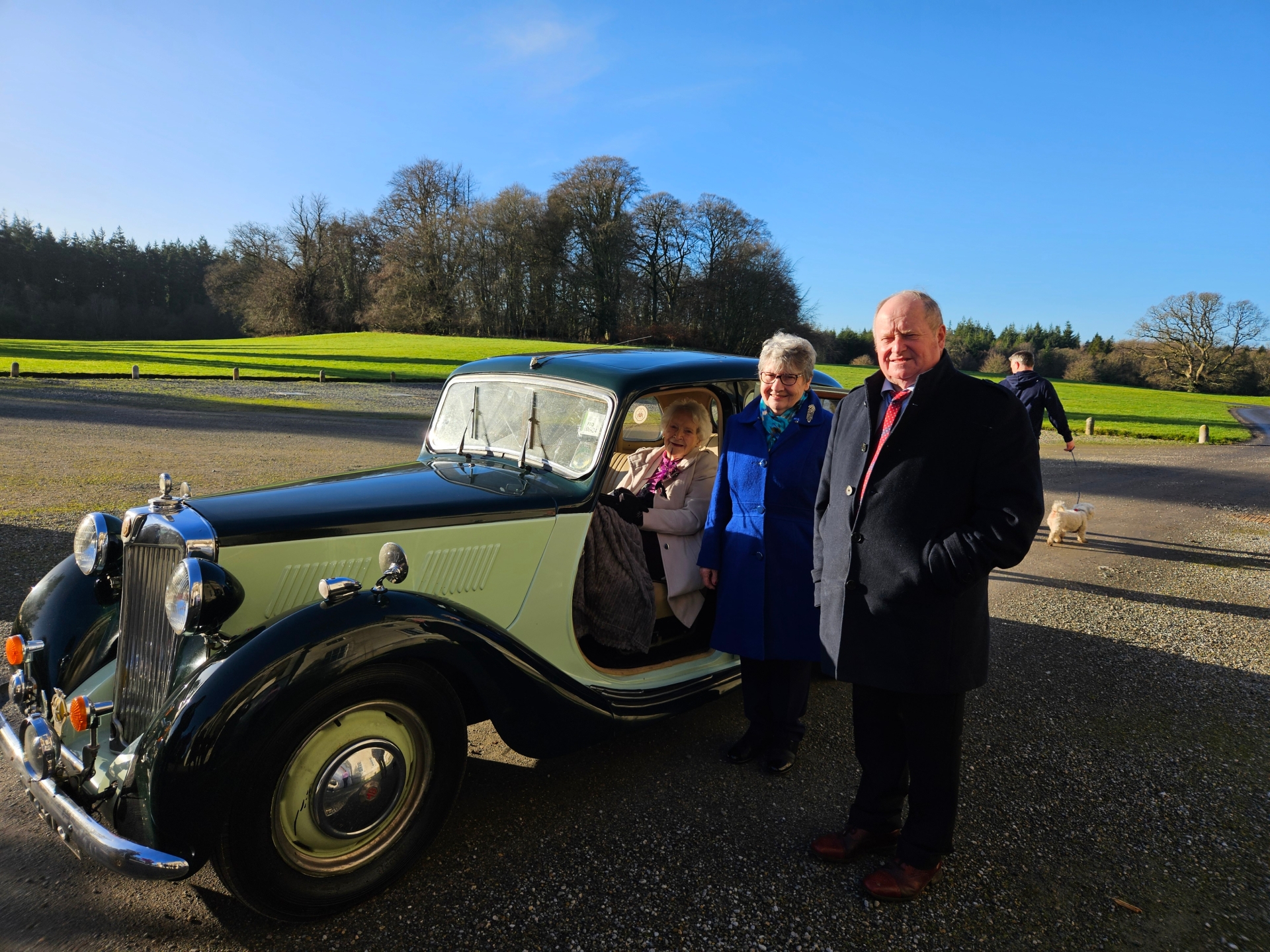 Vintage car owner Tom Treacy from The Heath had kindly chauffeured her in style in his 1952 MG, from Mountmellick to the steps of Emo house, where she had been a frequent visitor and friend to the late owner Major Chomeley Harrison.