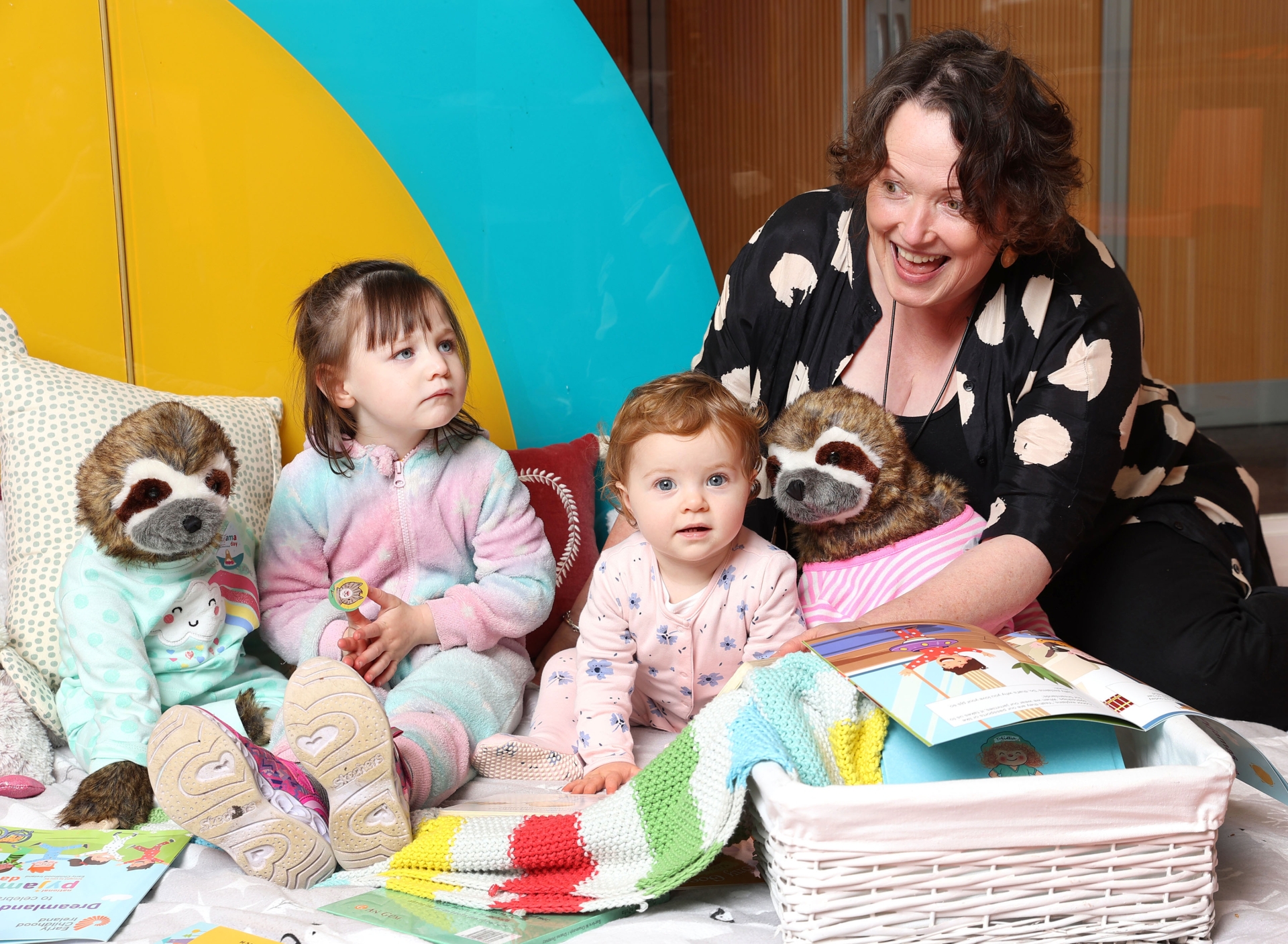 Zoe Bradley, aged 2, Tilly Smith, aged 1 and Teresa Heeney, CEO of Early Childhood Ireland launched National PJ day. Pic: Marc O’Sullivan
