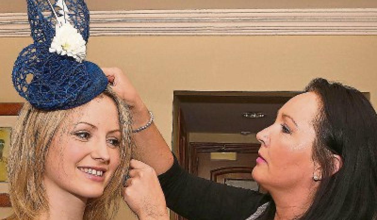 Laois milliner Pamela Curtin checking a headpiece on the 2015 Laois Rose Teresa Brennan Picture Michael Scully