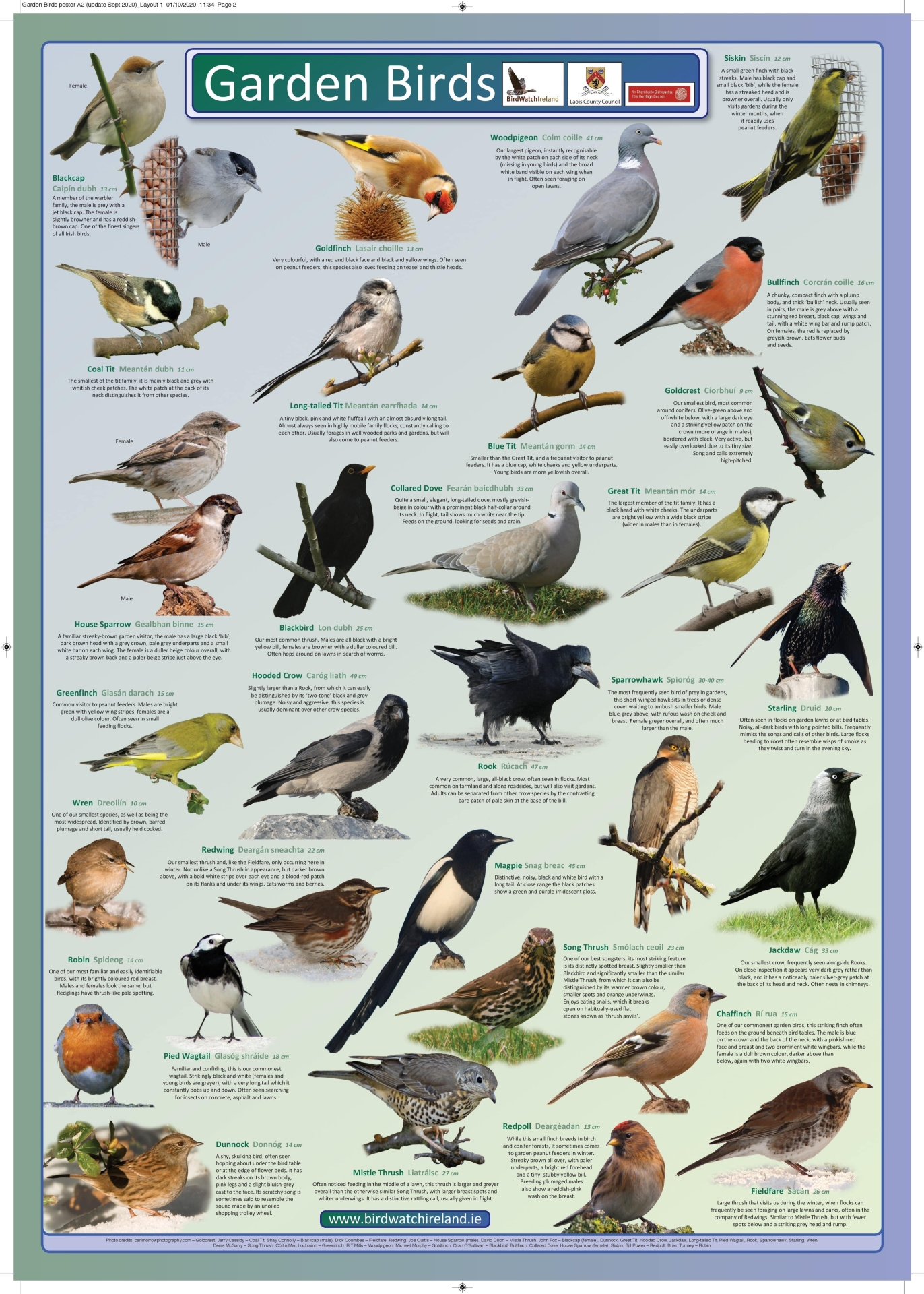 These publications are full of ideas for your garden. The Garden Birds poster produced in association with BirdWatch Ireland shows you the huge wealth of birds you might attract to your garden.