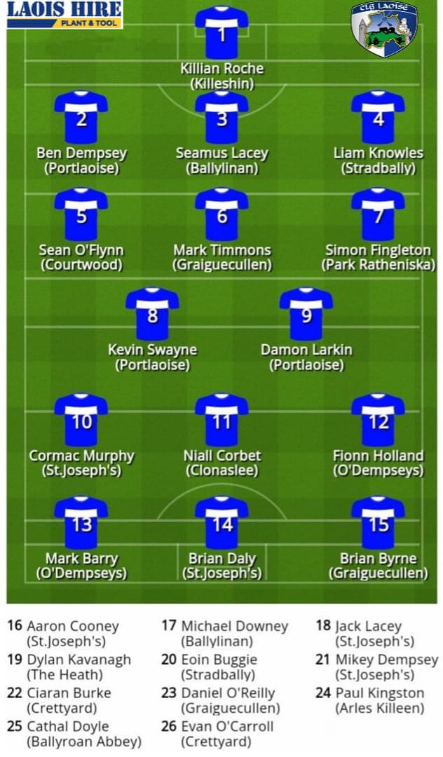Portlaoise’s Ben Dempsey, Stradbally’s Liam Knowles, O’Dempsey’s Fionn Holland, Park-Ratheniska’s Simon Fingleton and St Joseph’s Cormac Murphy have all been named to start in what will be their Laois Senior debuts with all five players having featured over the years for the U-20 and Minor teams.