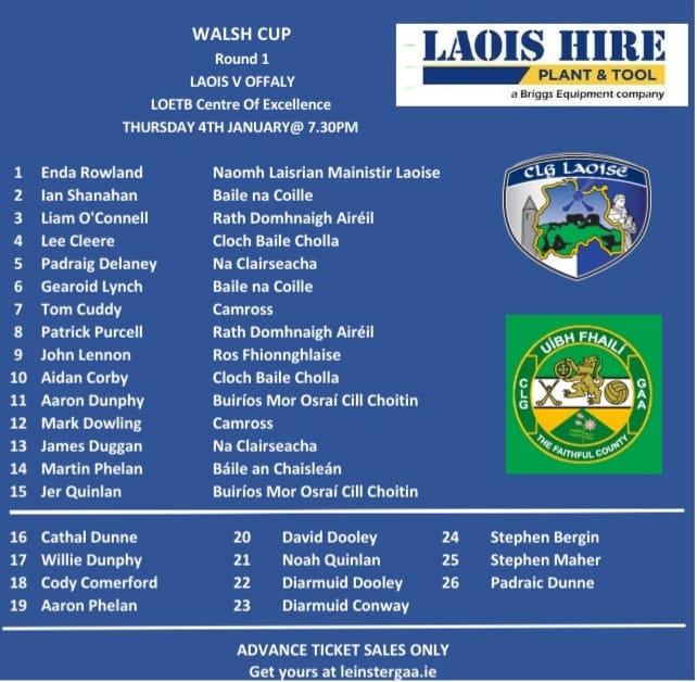 The Laois hurlers will get their season underway this evening as they welcome Offaly to the Centre of Excellence for the opening game in this year's Walsh Cup. The sides are in joined in Group 3 by Galway.