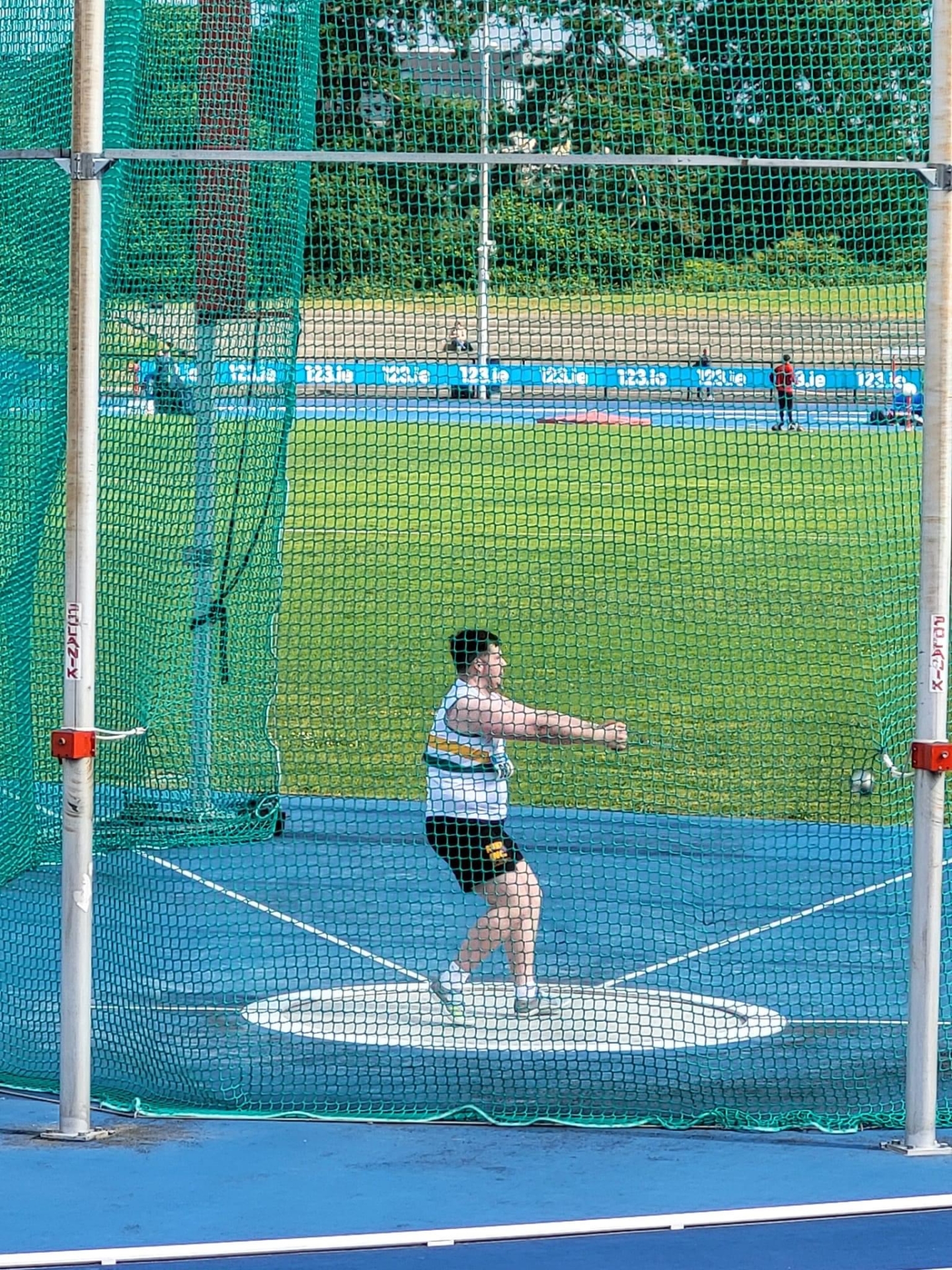 On Sunday, Ger Kelly threw a season’s best in the Senior Men Hammer competition with a throw of 41.46 which was good enough for 10th place. In the Pole Vault Aoibhinn McDonald cleared 3.05m which was good enough for 5th place. Maisy O’Sullivan finished strongly in the 1500m final to take 6th place in 4:29. Saragh returned in the Long Jump where her jump of 5.96m was just 10cm short of a medal, meaning she had to settle for 4th place. The final athlete in action was Cheryl Nolan in the senior women’s 5k. Cheryl positioned herself well throughout and came home in 16:15 which was good enough for 7th place. More below picture.