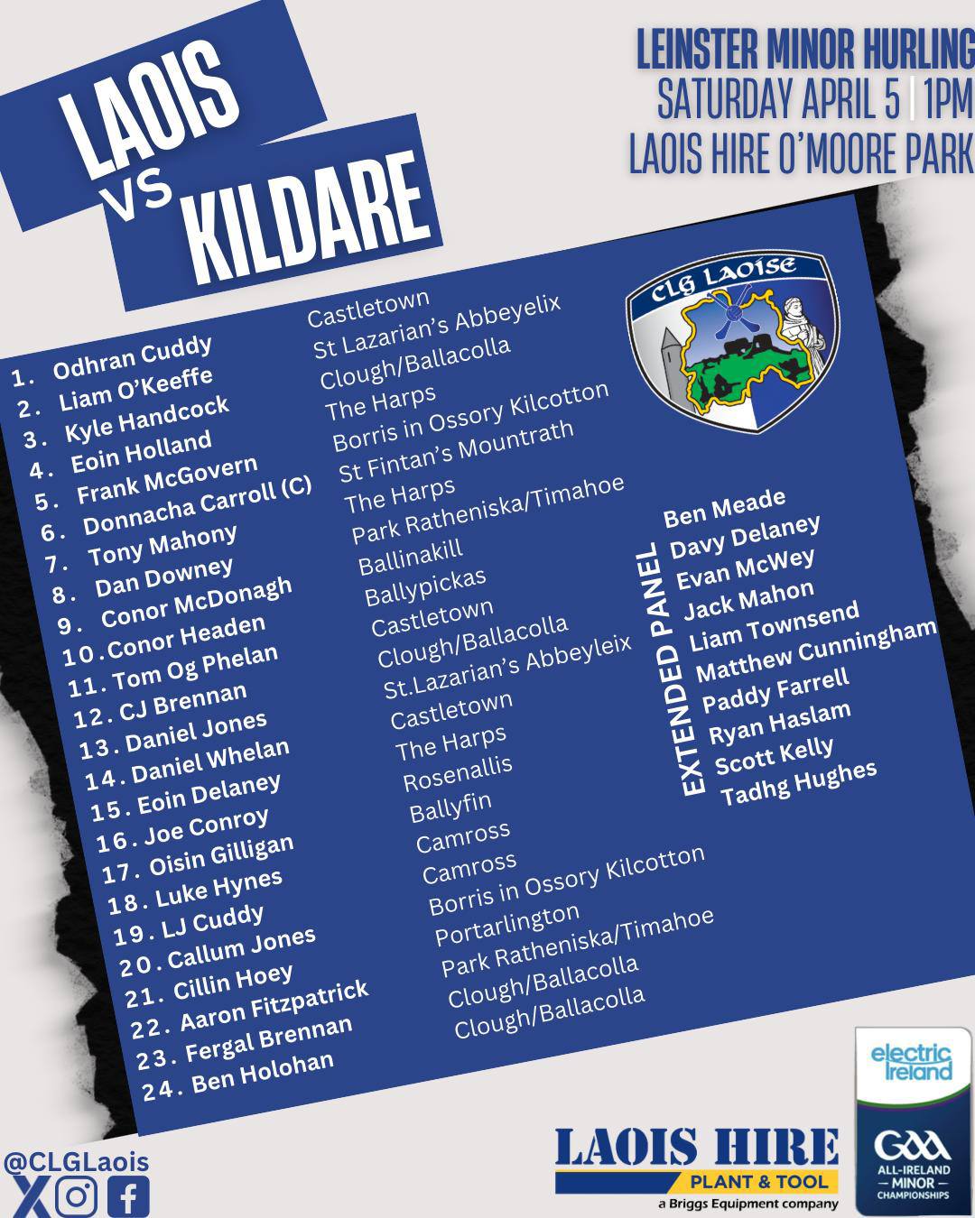 Laois Minor Hurling manager Glen McEvoy has revealed his starting 15 and substitutes for Saturday afternoon's opening game in the Leinster Championship against Kildare. He has also named who'll captain the side and his vice-captains.