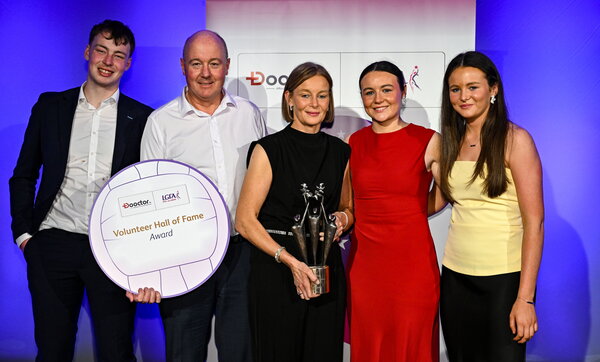 Hall of Fame award recipient Mary Casey from the Timahoe club in Laois with friends and family during the 2025 LGFA National Volunteer of the Year awards ceremony, in association with Dooctor.ie, at Croke Park Stadium in Dublin. Photo by Sam Barnes/Sportsfile