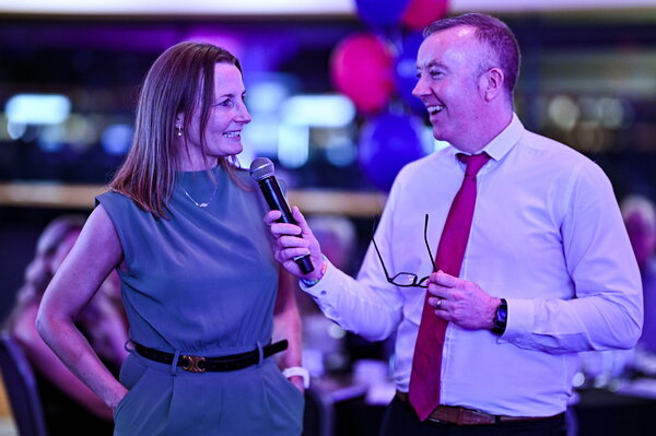 Angela Casey, sister of Hall of Fame award recipient Mary Casey from the Timahoe club in Laois, is interviewed by LGFA Commercial and Communications Manager Jackie Cahill during the 2025 LGFA National Volunteer of the Year awards ceremony, in association with Dooctor.ie, at Croke Park Stadium in Dublin. Photo by Sam Barnes/Sportsfile