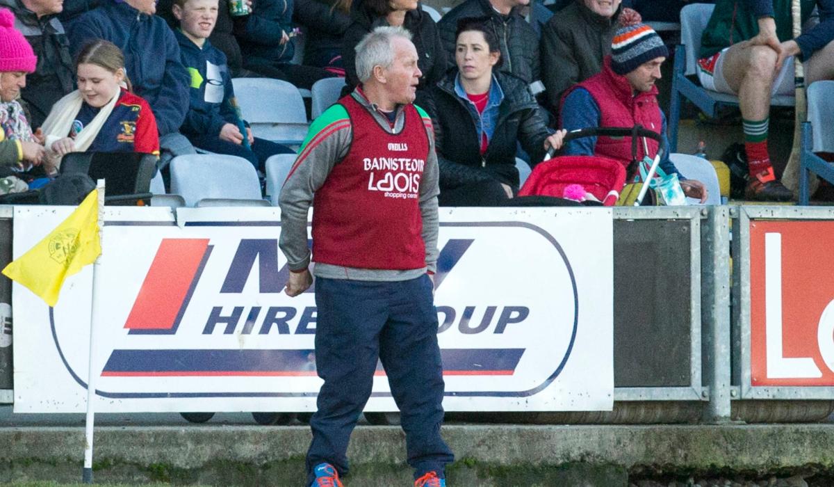 Rathdowney-Errill manager John Delaney on the line against Borris-Kilcotton in the SHC final at O'Moore Park. Photo: Alf Harvey
