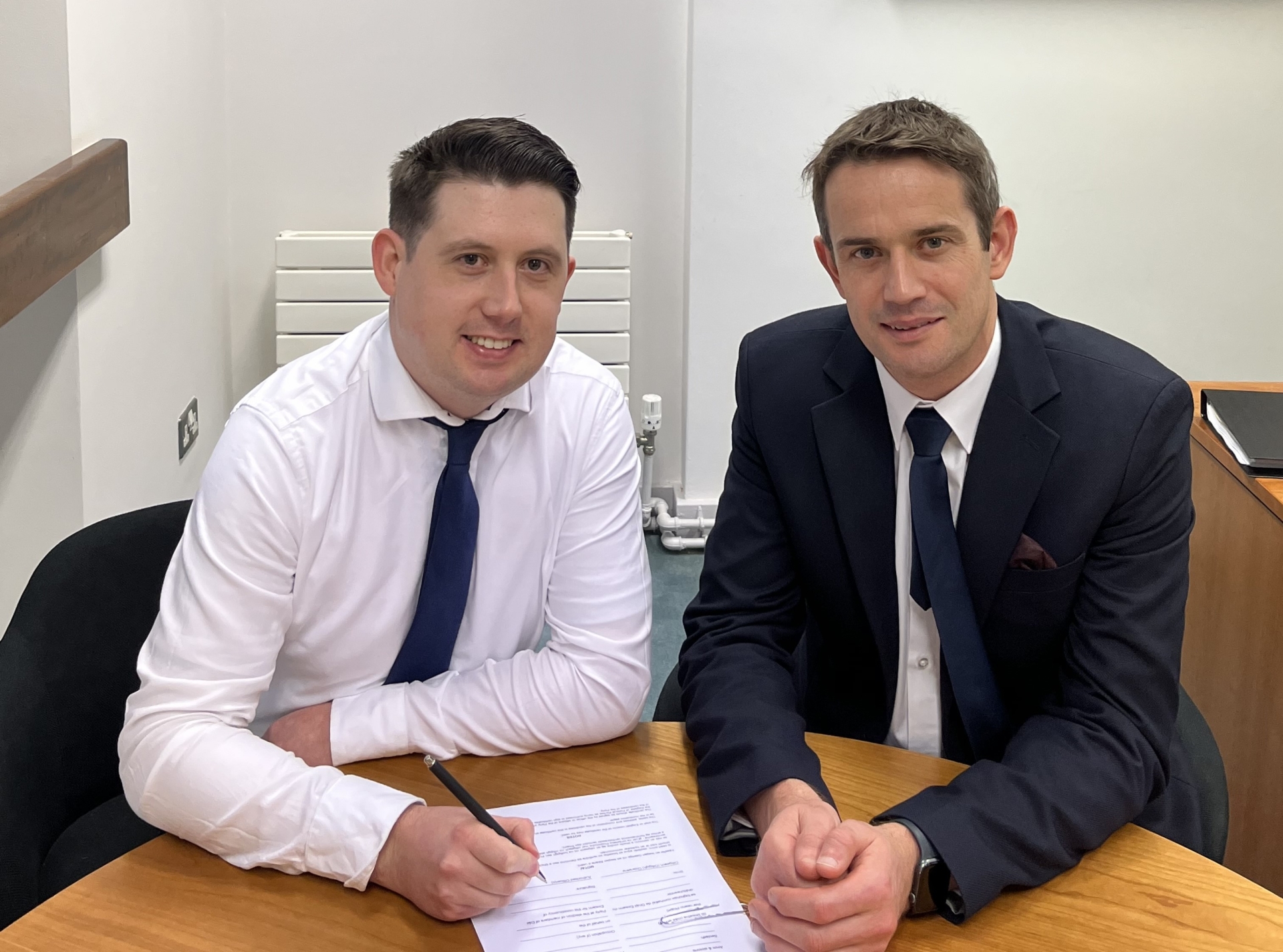 Jason Lynch signs his election papers witnessed by Returning Officer Rory Hanniffy in Portlaoise Court.