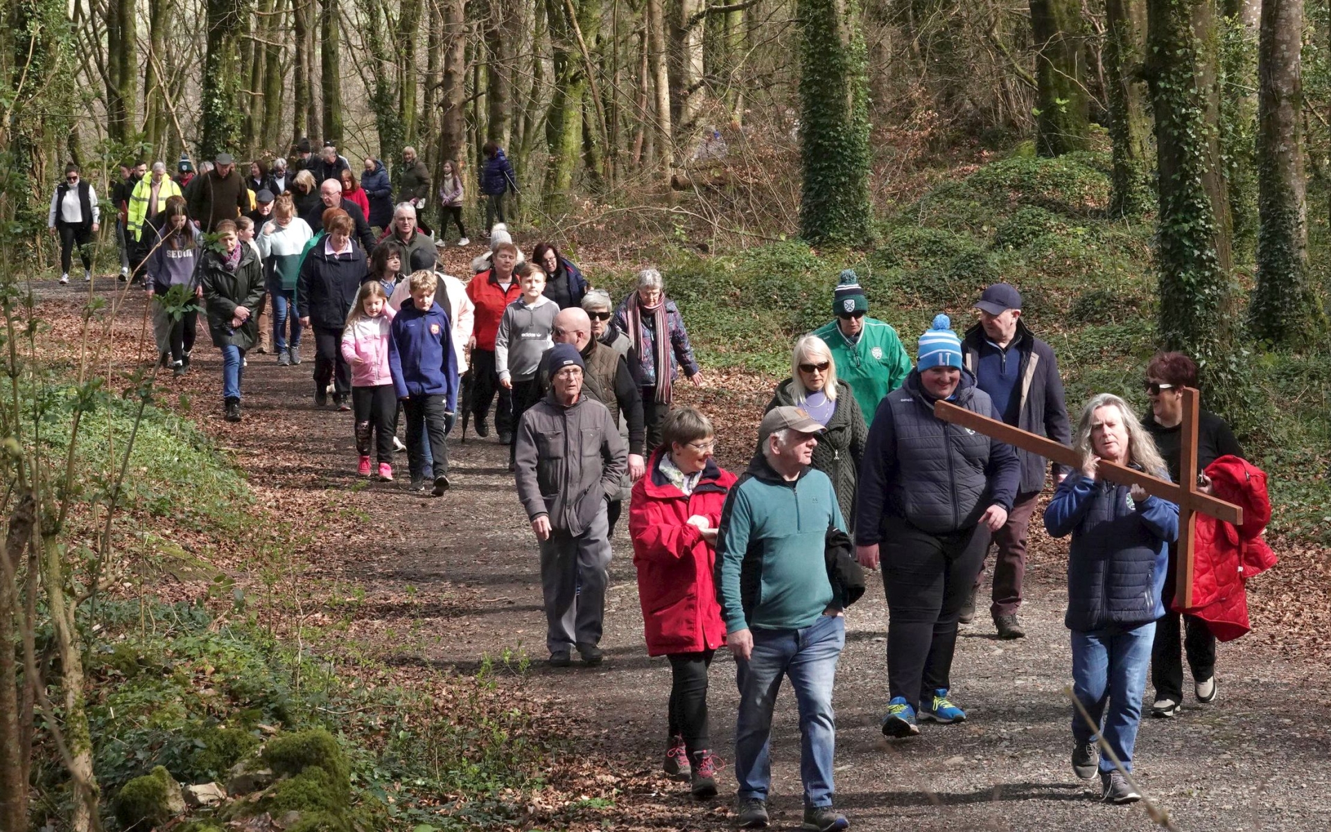 Stations of The Cross, Good Friday at Oughaval Wood Stradbally: Fr. David Vard and Archdeacon Alec Purser with parishioners at the start of the pilgrimage. PhotoS: Michael Scully.