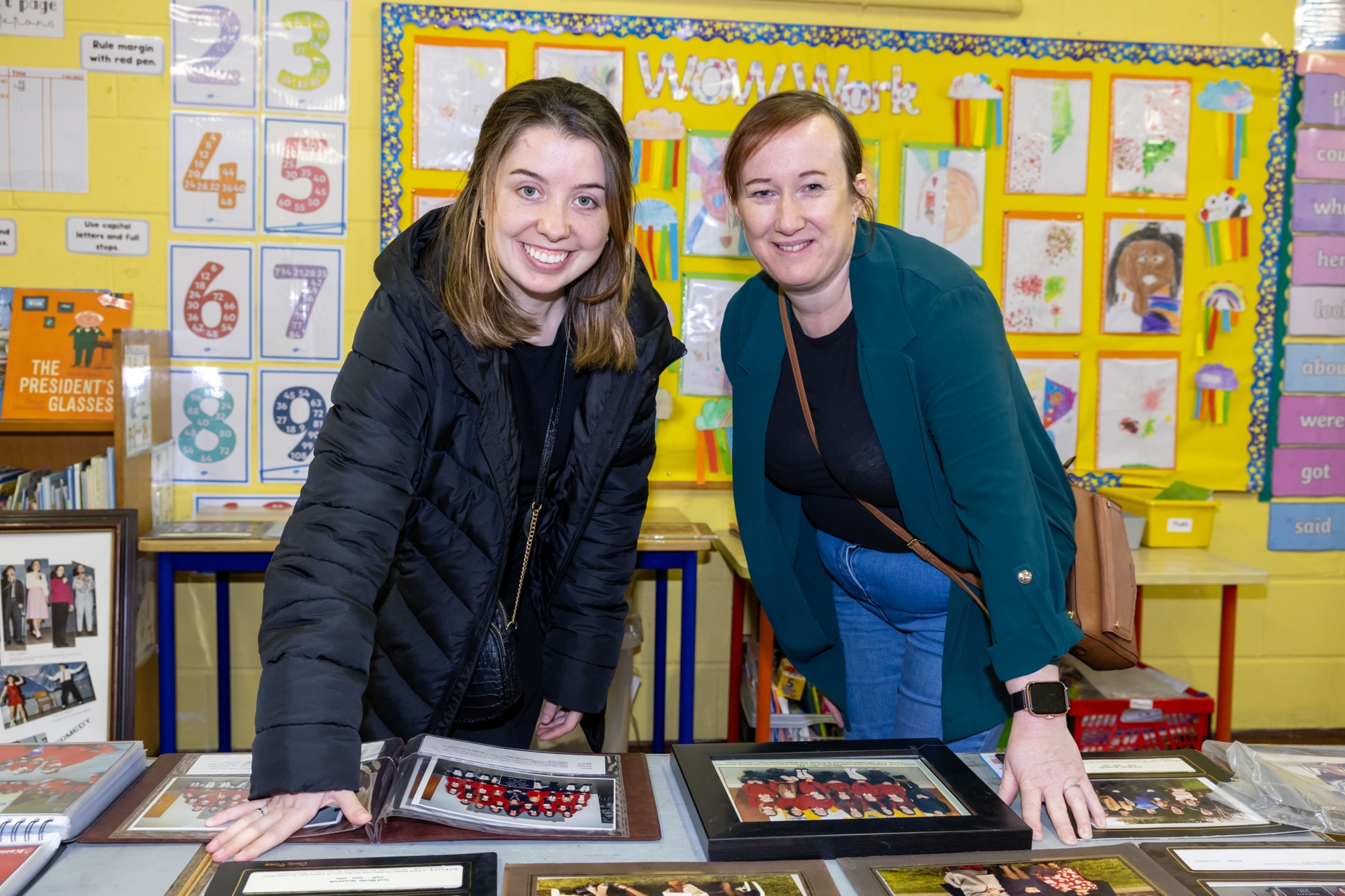 Blathnaid Cuddy who finished in Scoil Bhríde in 2010 and Carolyn Birney who started junior infants in Scoil Bhríde in 1984 pictured at the Scoil Bhríde Mountrath 40th anniversary celebrations.