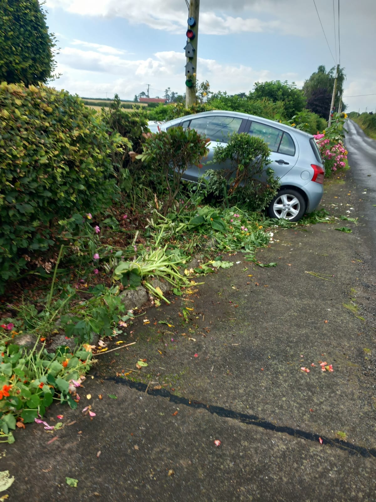 The crash occurred on Tankardstown Barrowhouse Road at around 4.30pm on Friday, February 13. The Volkswagen Golf car hit a pole further up the road before it crashed through a hedge and smashed a wall sending blocks onto the family home.