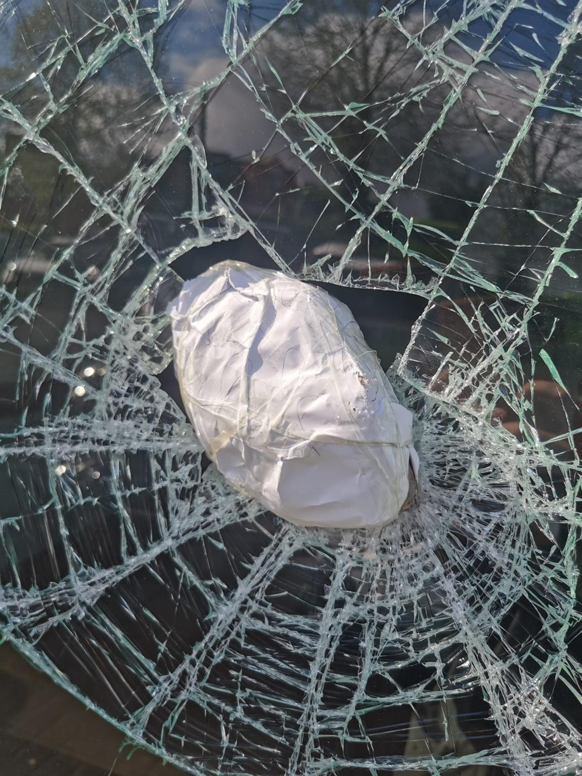A Portlaoise pizzeria which closed after a female customer was allegedly sent sexual messages has had its front window broken.