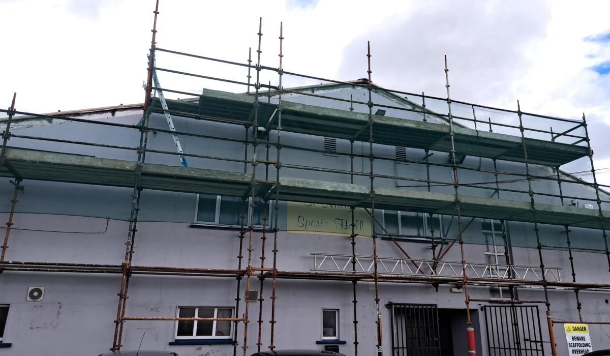 A roofing contractor moved on site in September at the big hall located off the town's Dublin Road near the parish church. Scaffolding surrounds the building with workers having removed the problematic metal roof material which was not insulated.