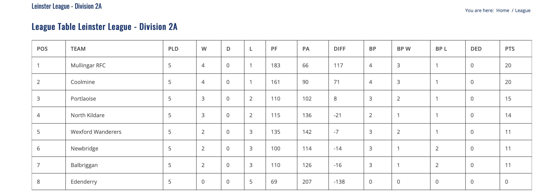 Leinster League Division 2A