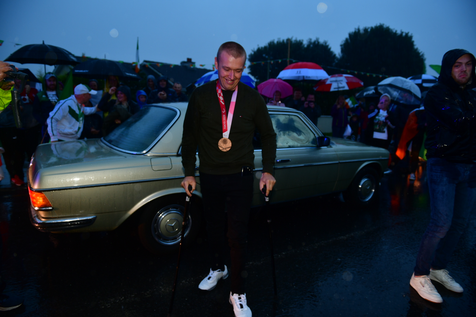 Hundreds of friends, neighbours, fans and townies lined the Borris Road in the Laois county town to give him the welcome he deserved on his astounding achievement in Japan.