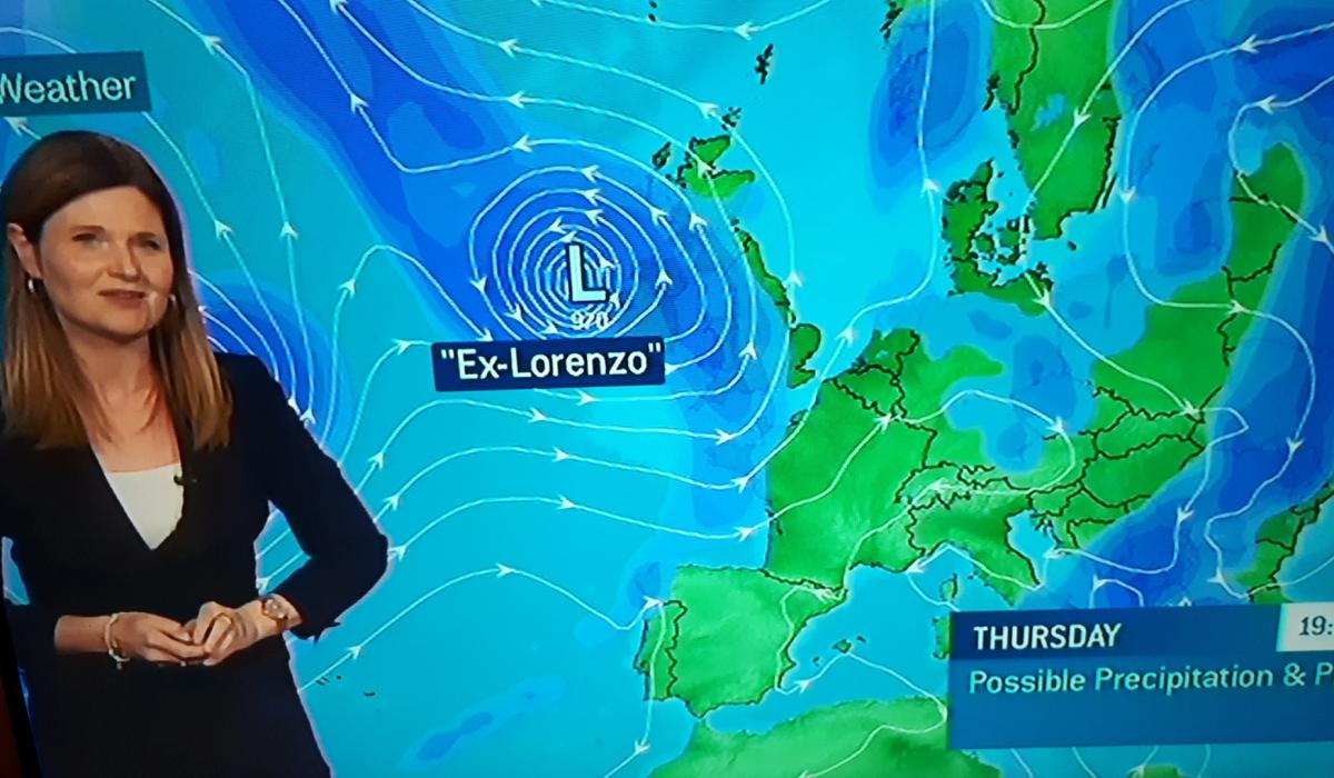 Michelle Dillon delivers the Met Éireann Hurricane Lorenzo weather forecast on RTÉ