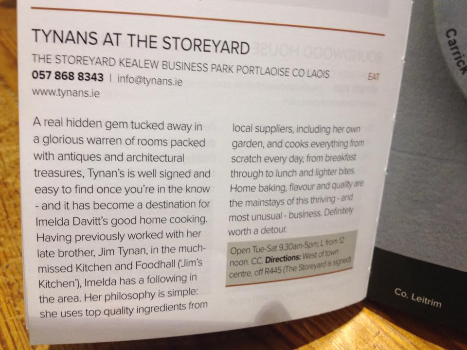 The review by Georgina Campbell refers to Tynan's as a "hidden gem" that is "definitely worth a detour" and a destination for "good home cooking".