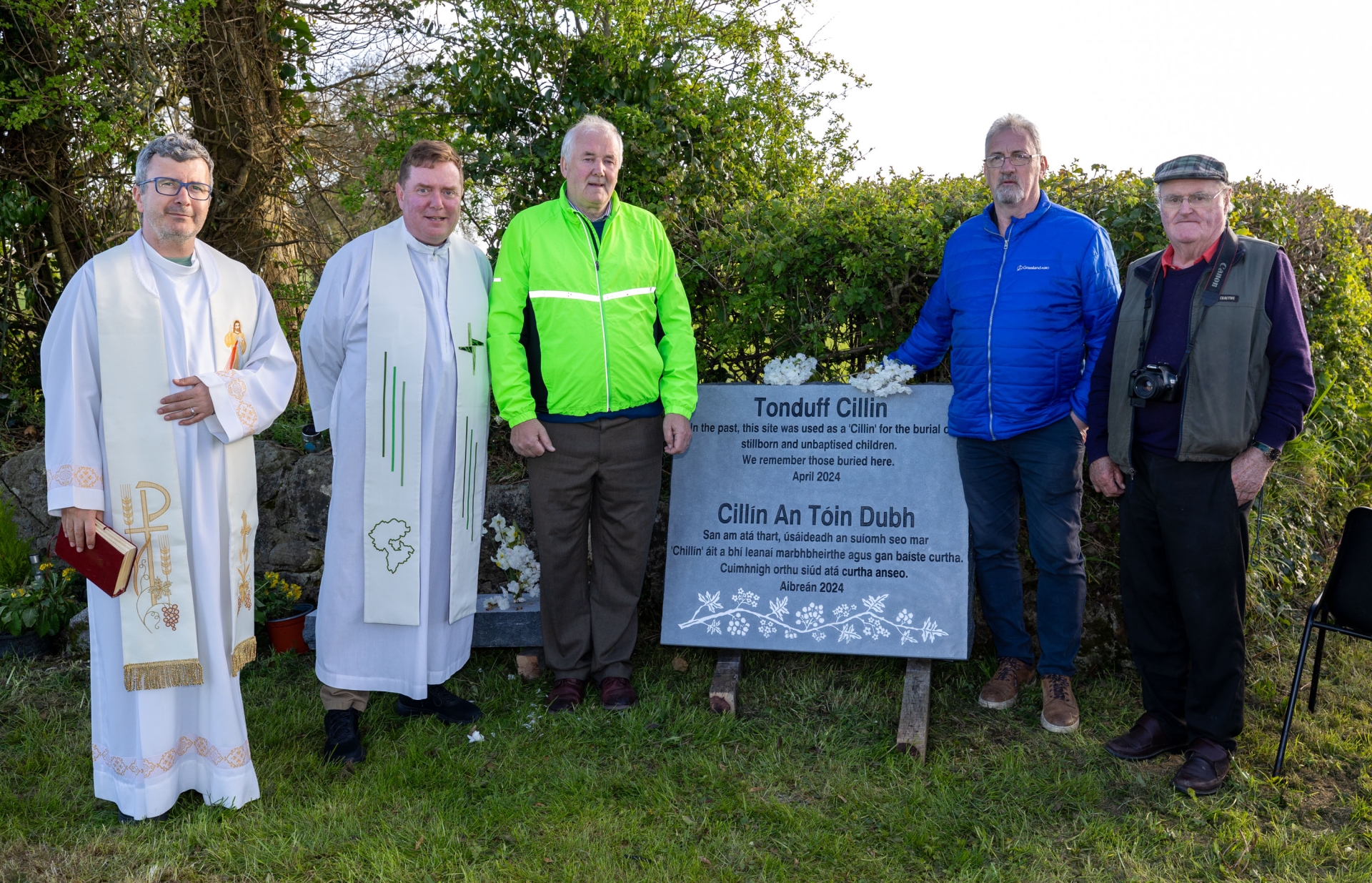 Pictured: Fr Petru Medves and Fr Paddy Byrne PP with committee members Noel Burke, Jim Ring and James Carroll at the special mass at Tonduff Cillín burial site for unbaptized babies. Picture: Alf Harvey.