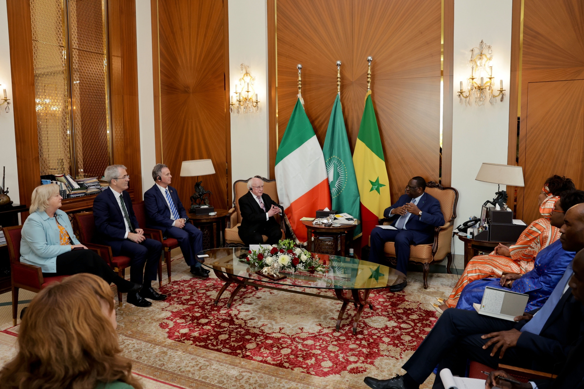 Minister Fleming was present when the President held a bilateral meeting on January 24 with President Sall in the Palais Présidentiel in Dakar. At their meeting, the two Heads of State discussed a range of topics relevant to the upcoming Dakar 2 Summit, including structural issues surrounding food security, climate change and climate justice, desertification, human rights, empowering women, and the importance of multilateral institutions in achieving these goals. MORE BELOW PICTURE.