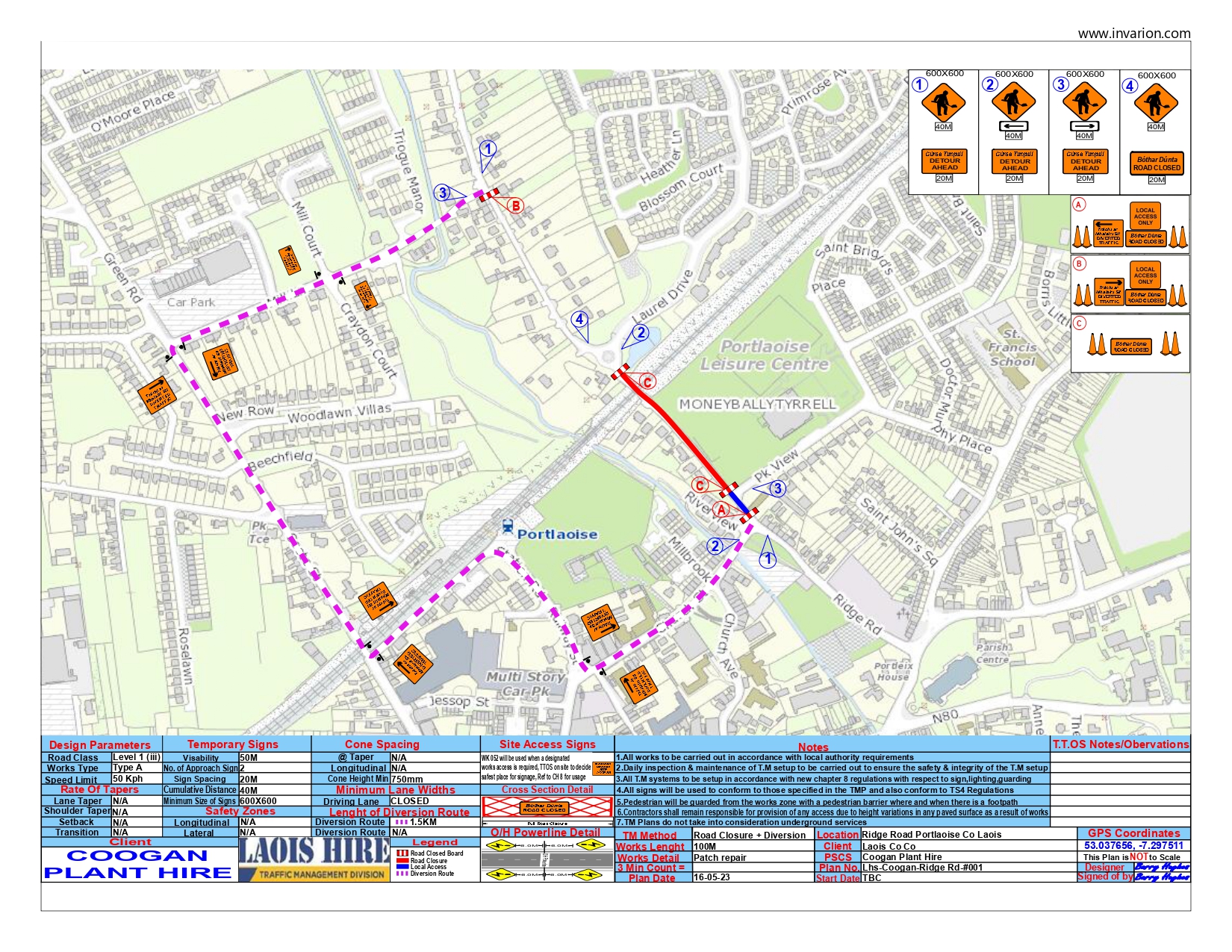 The order to close the road was signed by Senior Executive Engineer at the Road Office, Wes Wilkinson on behalf of the Roads Authority. Email portlaoisemd@laoiscoco.ie