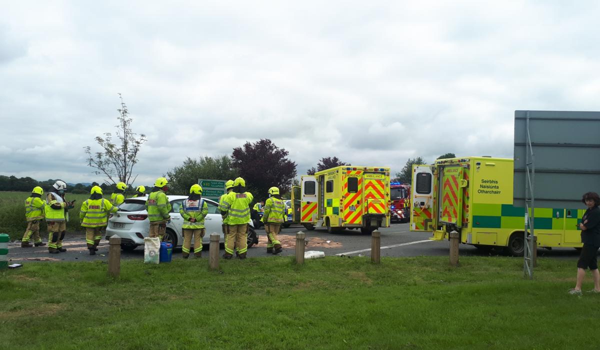 Emergency services at a crash on the N80 near Mountmellick in 2021 at the junction highlighted to Laois County Council. Photo: Leinster Express