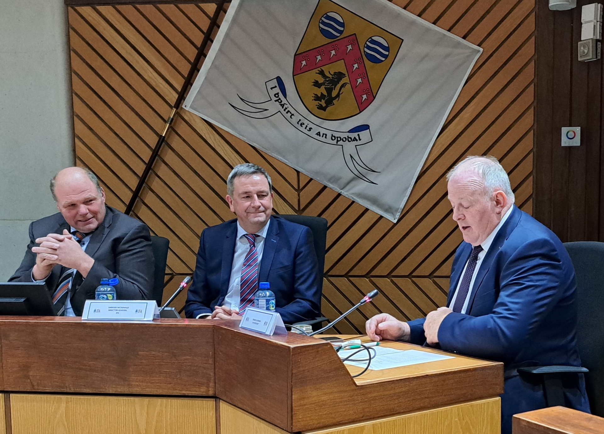 Pictured: Laois IFA Chair, Henry Burns, IFA Director General, Damian McDonald, IFA President Francie Gorman. Pic: Leinster Express / Laois Live