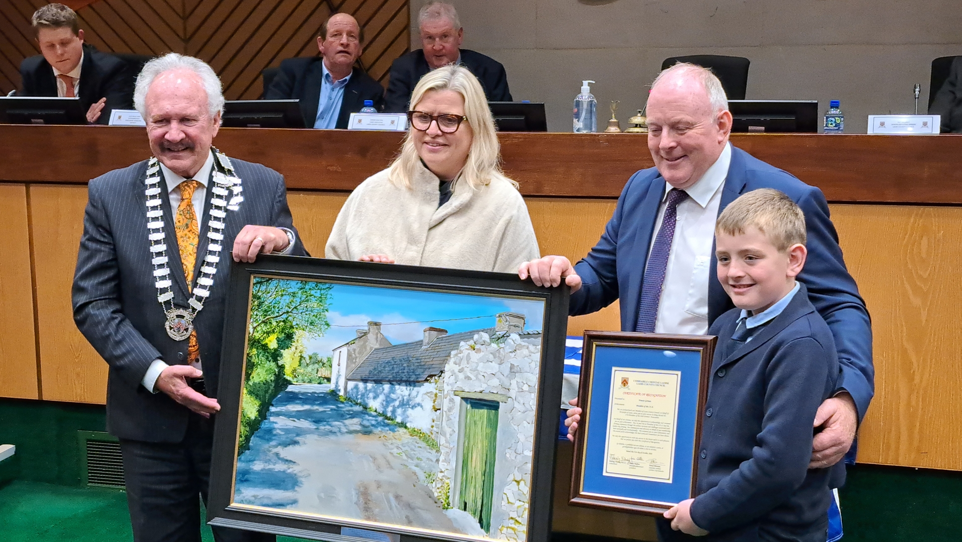 As Laois County Council Cathaoirleach, Cllr Padraig Fleming had the honour of bestowing the Civic Reception on the Ballinakill man in recognition of his electoral success.