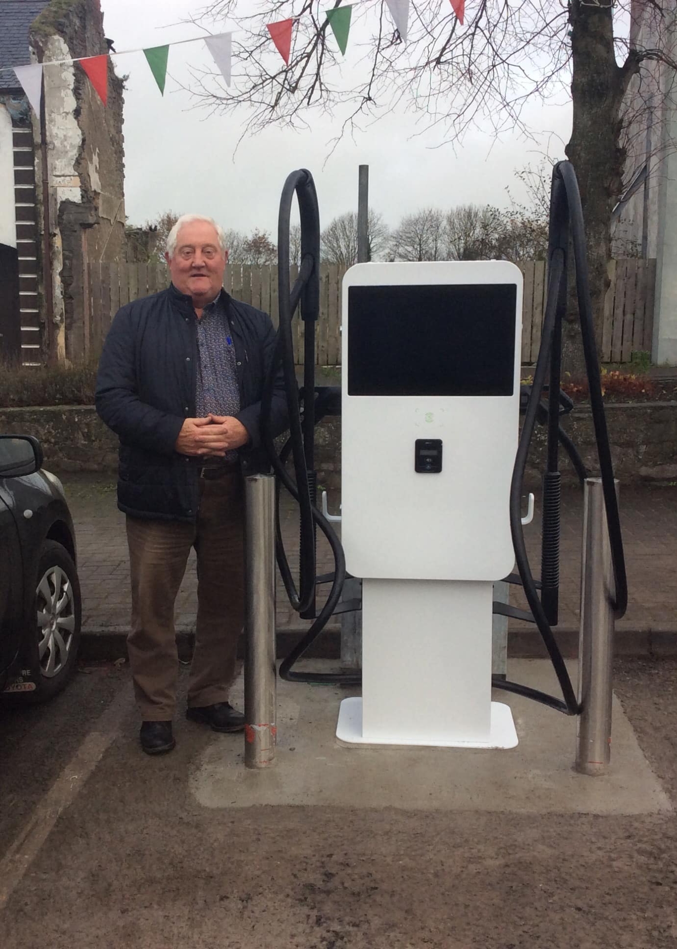 Pictured: Cllr John King with the e-car charging units that were installed in early November, 2024.