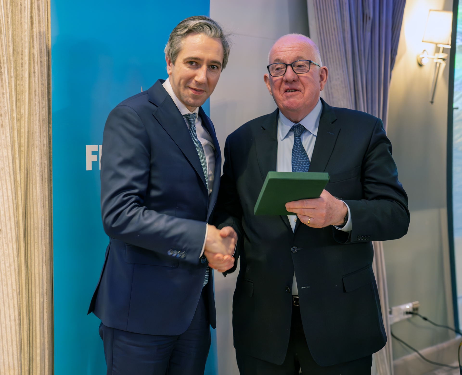 Charlie Flanagan and Tánaiste Simon Harris at a function in Portlaoise to celebrate his career in politics. Pic: Renata Metelicaka