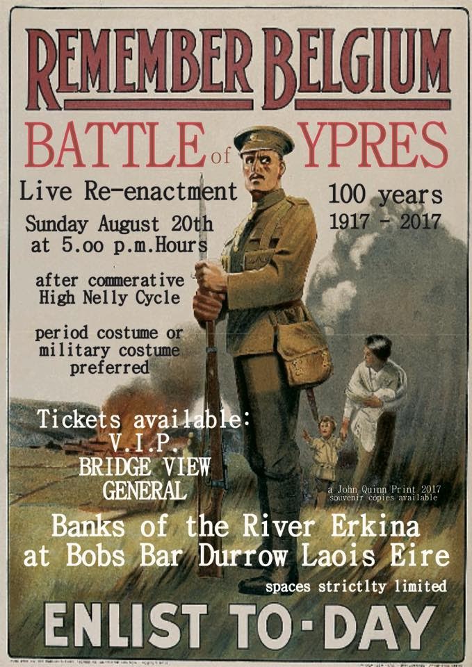 An event during Heritage Week will also commemorate Sgt Moyney, when a reenactment of the action for which he won his Victoria Cross will take place at the River Erkina besind Bob's Bar in Durrow, on Sunday 20th August, from 5pm. A snug in the famous Laois bar is named in his honour.