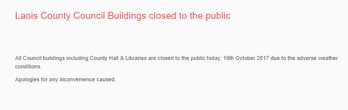 All Laois County Council buildings including County Hall and Libraries are closed to the public.