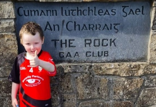 Little Cathail is already a proud member of Rock GAA, starting to play football aged 3 in their young academy, with hopes to bring the team to their first All Ireland club championship! (pictured below)