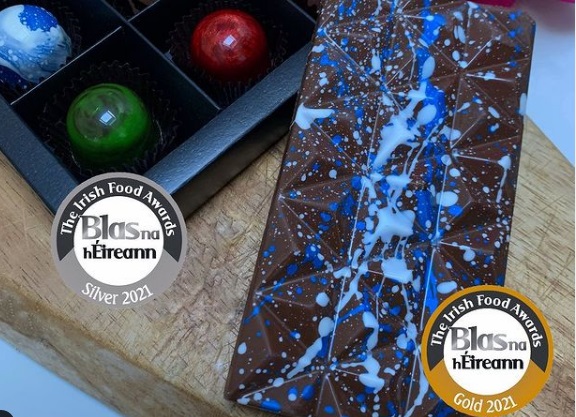 Temptation Pâtisserie won the Best Artisan Product 2021 for their Sea Salt Caramel Bar, a creamy 40% milk chocolate bar shell filled with a homemade salted caramel, made using West of Dingle sea salt, hand-harvested on the Dingle Peninsula. The bar is splashed with white and blue cocoa butter, illustrating the breaking waves of the sea.