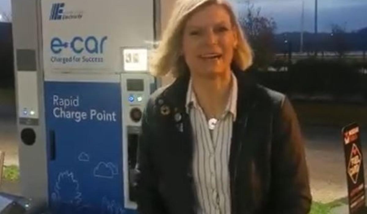 Pippa Hackett at an electric car charging point en route Glasgow