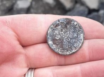 Digging has uncovered fascinating artifacts, including this button, photo by Laois archeologist Colm Flynn who is overseeing the historic side of the project. Colm explains more below.