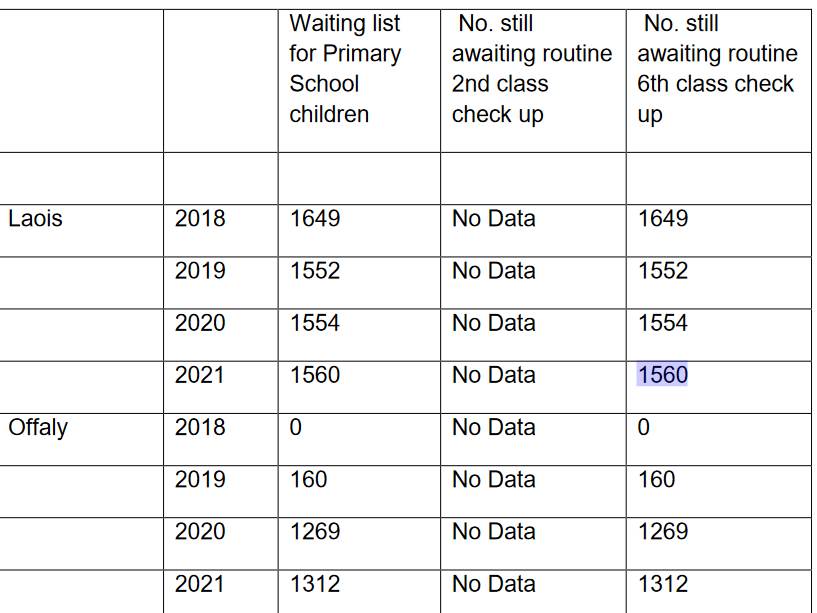 Deputy Nolan was speaking after the HSE confirmed that there are 1,560 sixth class children in Laois on the dental waiting list while there are 1,312 sixth class children waiting in Offaly: