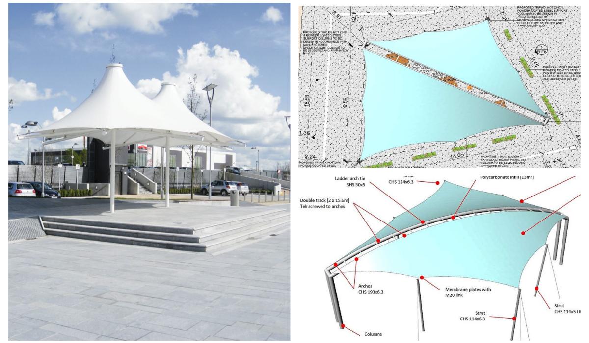 Images of the canopy which will have a similar roof to the structures on the Civic Plaza beside County Hall in Portlaoise