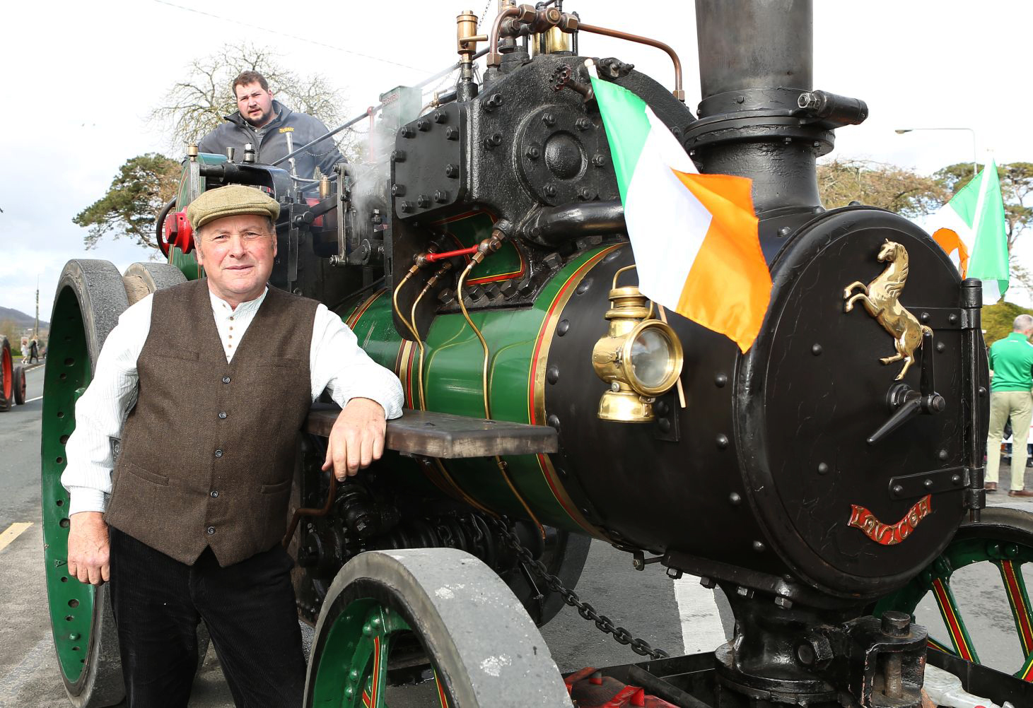 Niall and Billy Carter with a 1908 Aveling and Porter Steam Engine. Photo: Michael Scully.