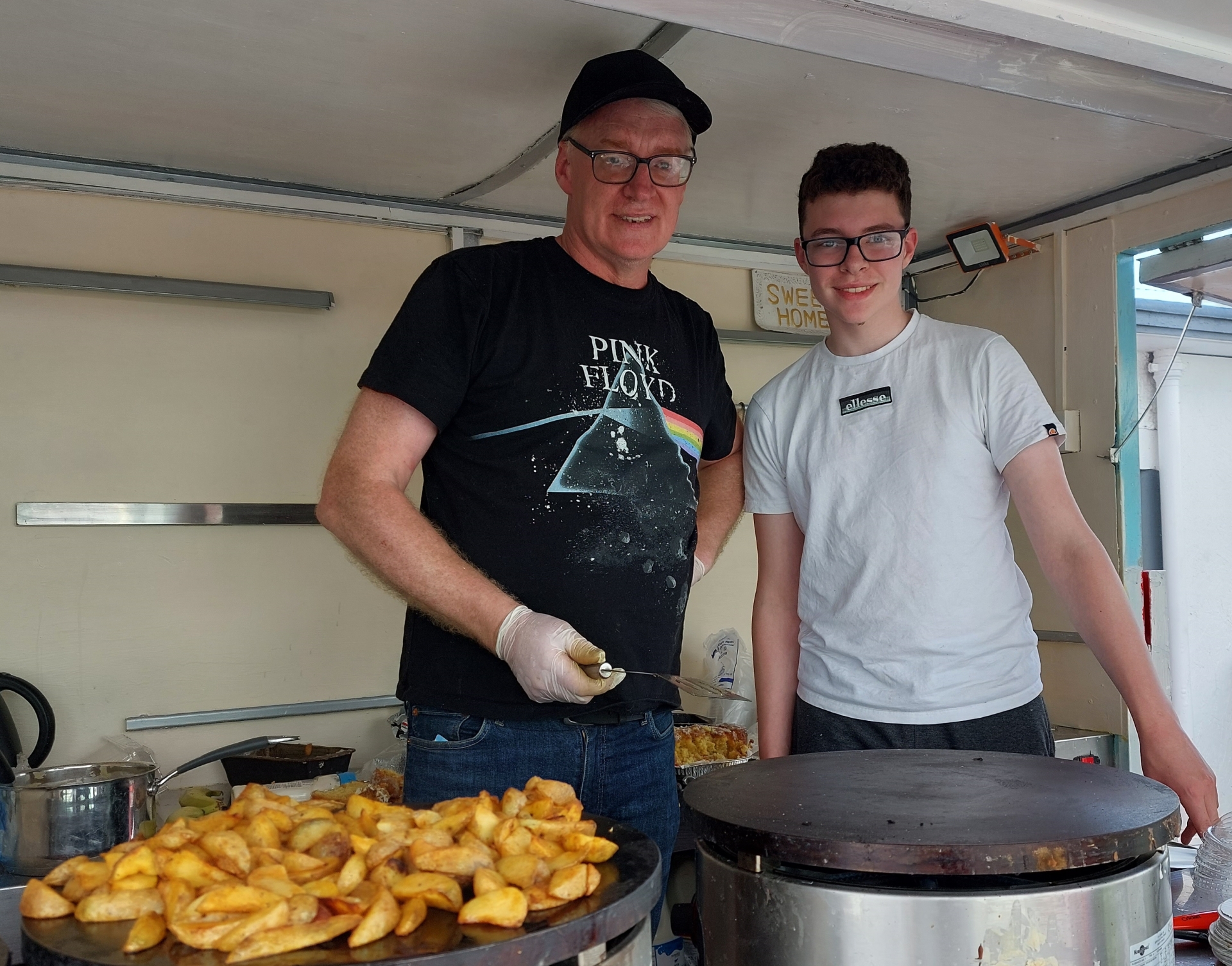 Below: The Crepe Cart's Michael Delaney and son Tom, Portlaoise, ready to cater for hungry festival goers.