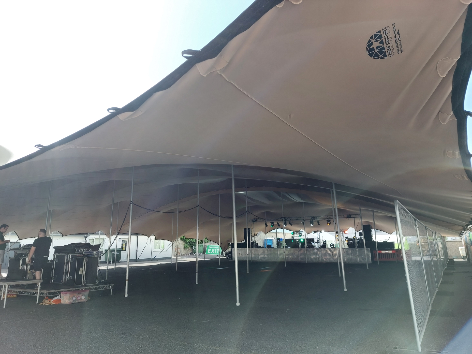 A giant awning (see it below) has been set up inside the old Fort Protector that can keep an estimated 3,000 people safe from any rain, ready to enjoy live music for the next four days.