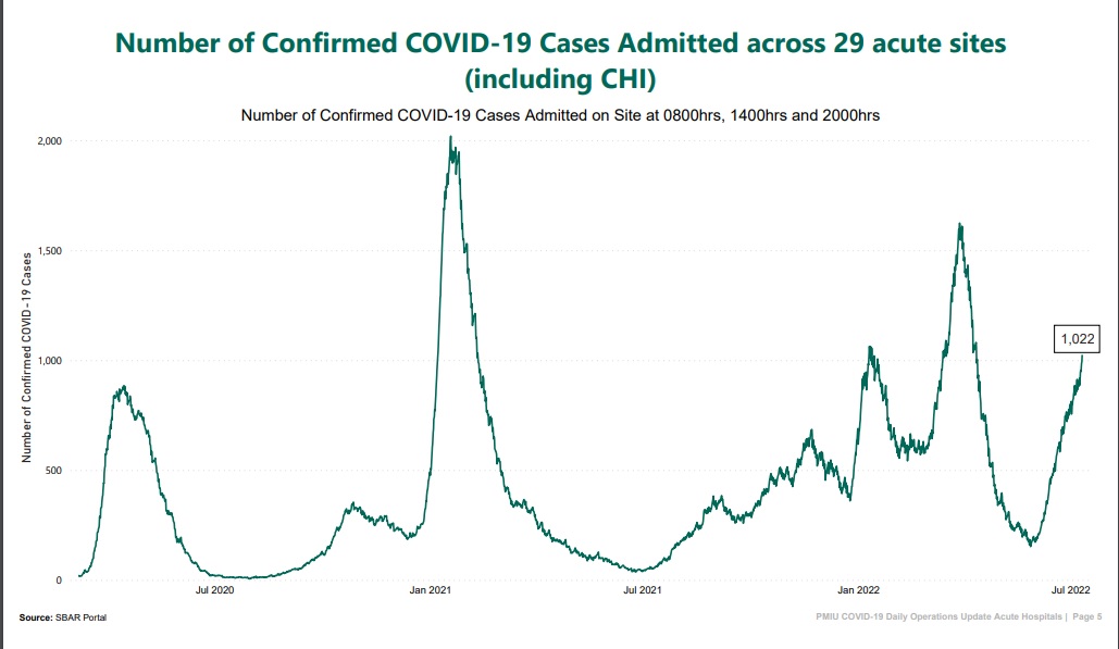 Covid-19 has shown a spike in hospital admissions this July in Ireland and Laois, compared to the same month in 2021 and even 2020.
