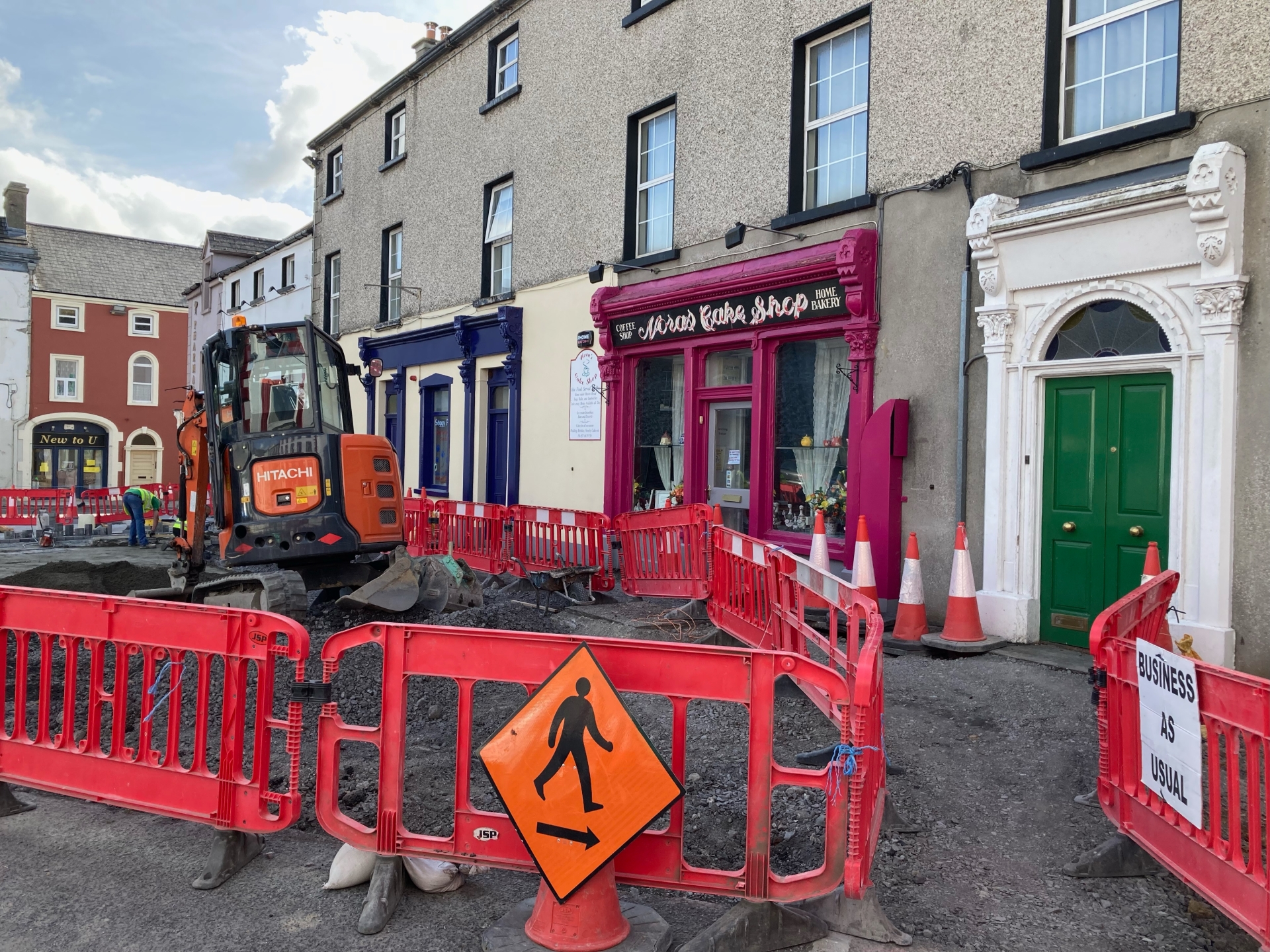 Mountmellick is undergoing not just extensive roadworks on the N80 causing road closures and traffic diversions - read below - but further work is continuing in the town's heritage market square.
