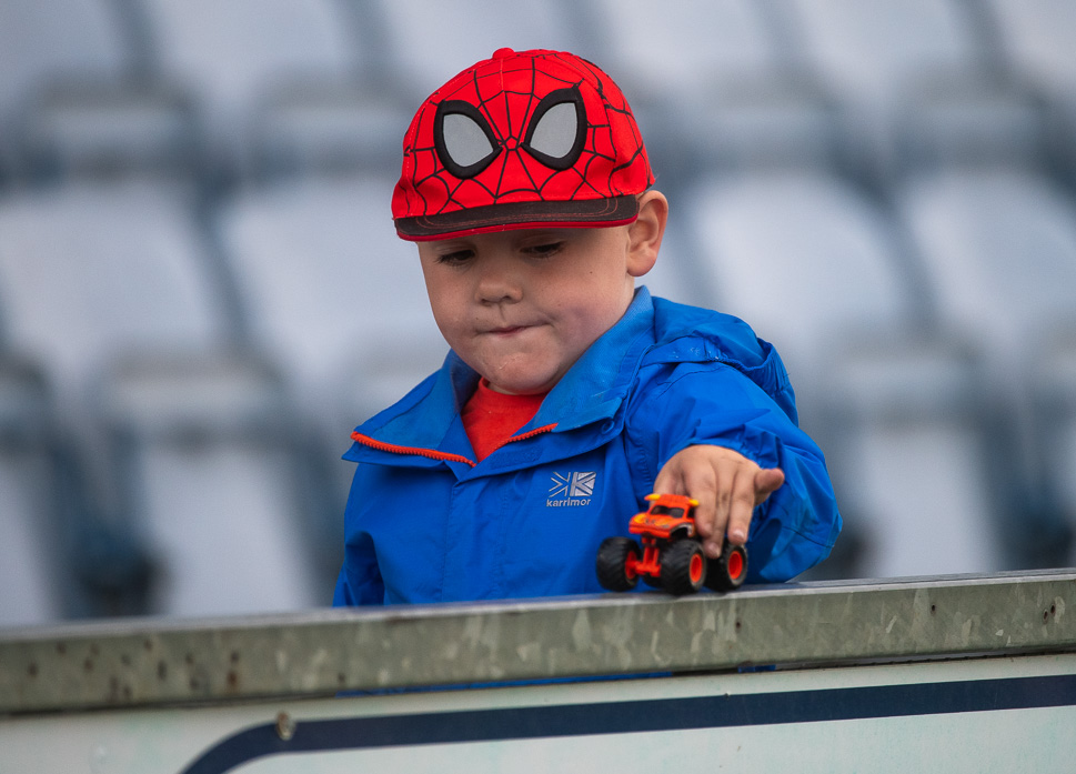 This young Peter Parker has more interest in his toy truck than the exploits on the field. I don't blame him either, that's a cracking little monster truck. Credit Denis Byrne