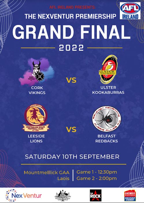 The AFL Ireland Nextventure Premiership Grand Finals this Saturday the 10th of September